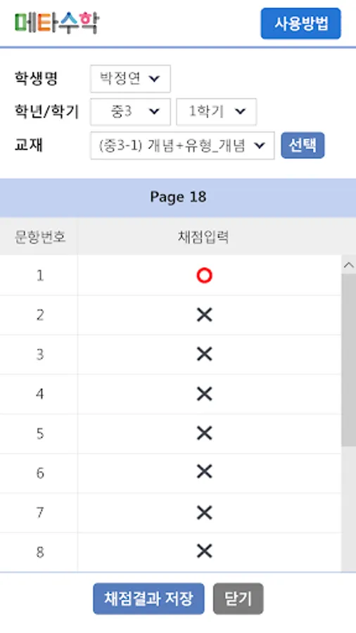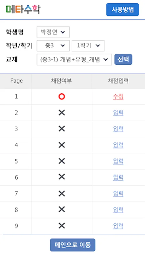 Meta mathematics teacher is same as Meta mathematics center (Center) ID / PW and all the general examination papers made in the classroom can be scored.