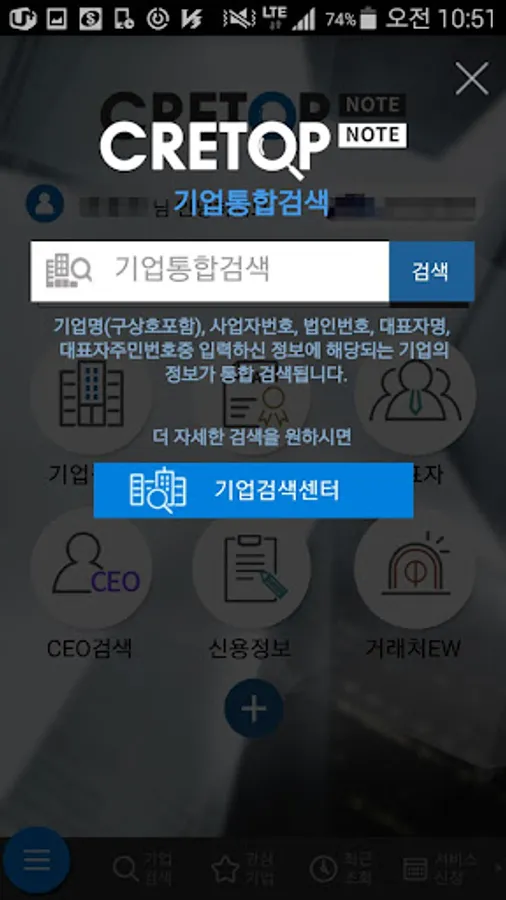 ㅇ CRETOP service is a service that allows you to inquire the largest company information (7 million) and representative information in Korea. You can discover new customers and check the business information of customers.