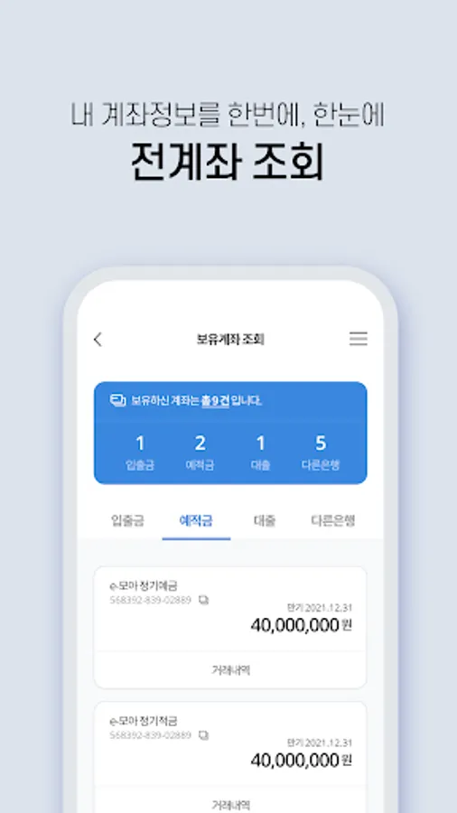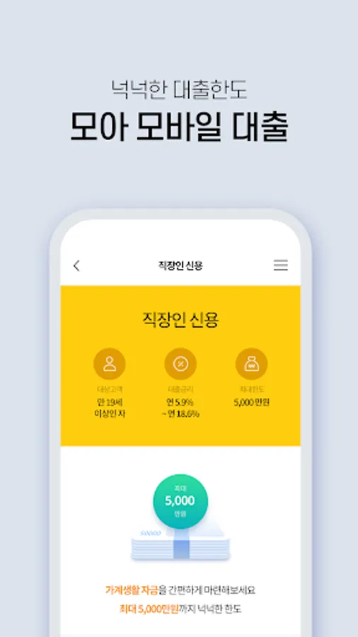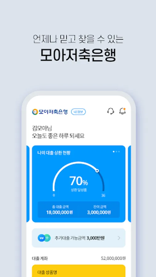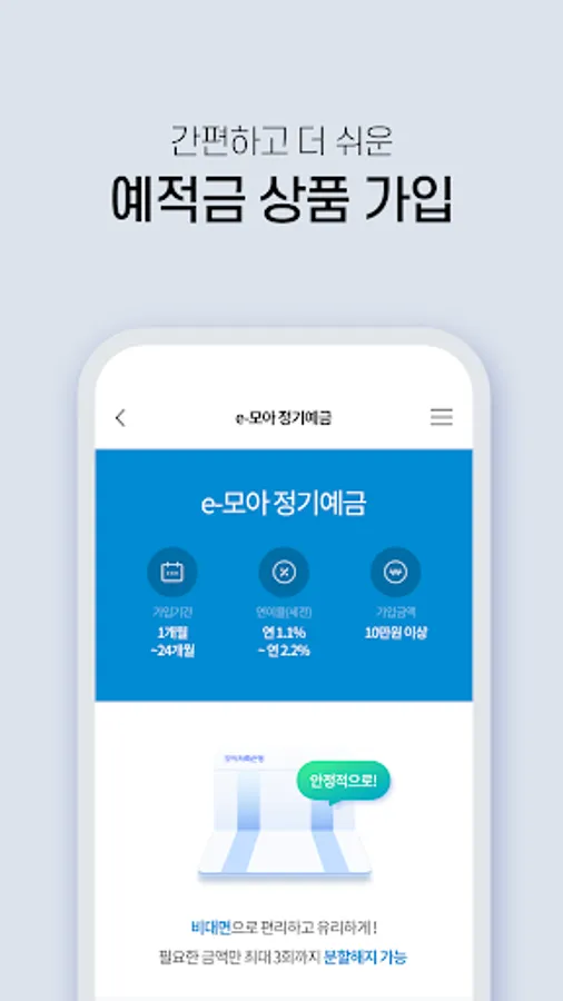 Financial Product Mall: Provides various financial products such as loans for office workers, entrepreneurs, housewives, and e-moa regular installment savings
