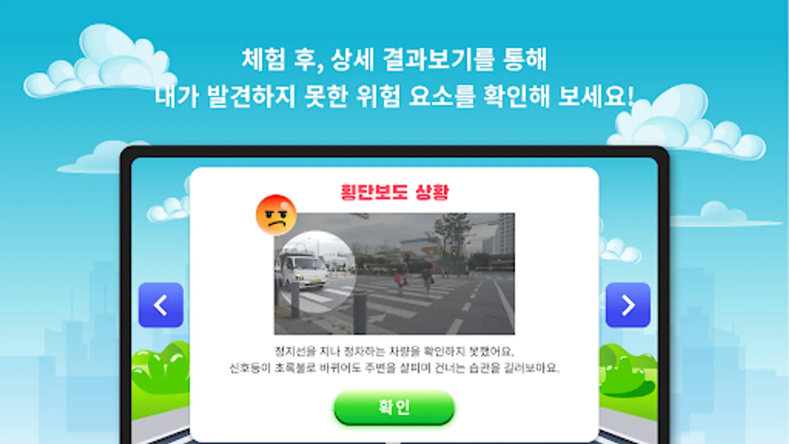 10 to 15 dangerous situations are provided in the first-person school video where you select a region and experience it.