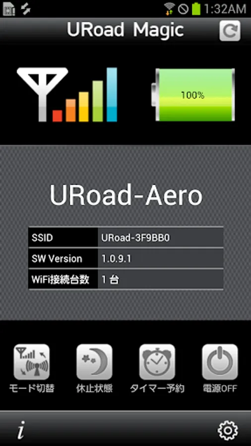※ You may change password(Default: admin) on "More information?" of "Information Screen" on URoad Magic application.