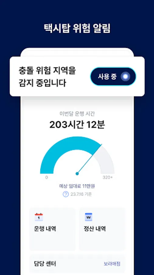 Danger detection notifications are provided to help safe driving while driving the taxi tower. In some low-floor underpass areas (restricted height 2.0m or less), you will be notified by voice.