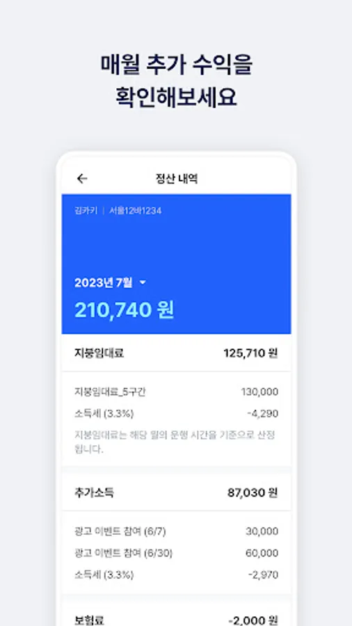 You can check the details of monthly income such as roof rental, additional income from advertising events, etc.