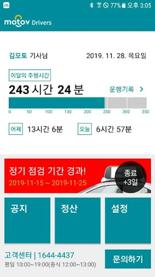 We provide information for the driver such as operating time, settlement and car center information.