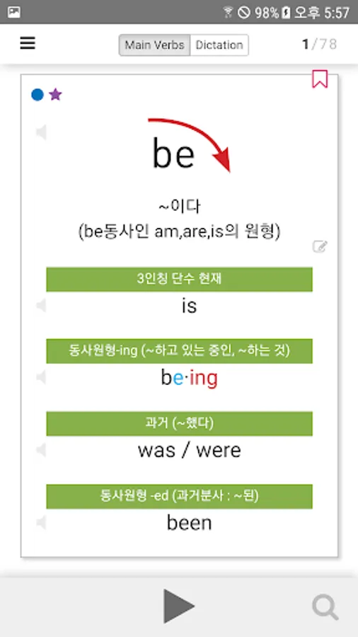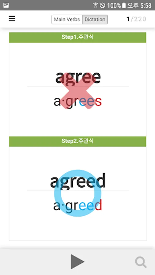 If you do not know the words, you can not do anything. Most important words in the English speaking. Writing is a verb. English verbs changes vary depending on the person of the subject, tense, changes in the types of sentences. There are constant changes in the company are derived rules, derived words are taken to change the pronunciation and meaning, form. The company core 221 has the basic configuration presented 221 company listed on the company, the curriculum often used in everyday life, and to study the morphology of words, pronunciation and meaning changes accordingly derived from the verb repeatedly. Listen to a total of 1,101 words that are derived from the company's core 221 can listen and learn to focus on learning as you want, separated by dictation learning. Once over 221 key verbs learn the pronunciation changes, changes in the form and meaning of the rules derived in accordance with syllables and accents, different oils. Voiceless words at once, English speaking, it can be more quickly and improve the writing skills.