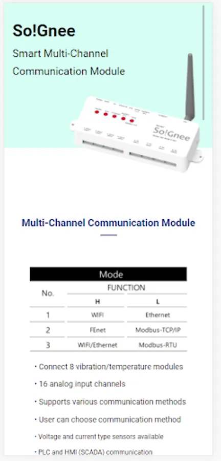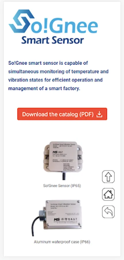 So!Gnee smart sensor is capable of simultaneous monitoring of temperature and vibration states for efficient operation and management of a smart factory.