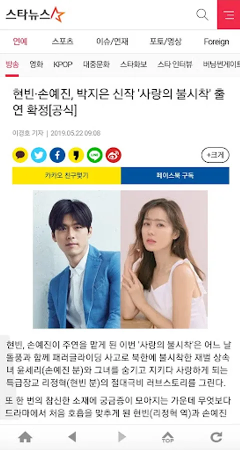Breaking news real-time entertainment, "Star News" the official launch applications! Entertainment News, Celebrity All Star News, offering news, the incident quickly deliver applications for iPhone and iPod Touch Meet. - To provide the entertainment issues of ESR News HOT News and media / film / music / Star interviews latest news is updated in real time. - HOT a picture of the entertainment is provided in the form of a slide, you can enjoy them even more diverse picture. - 24-hour in-depth coverage of the stars and we'll send ★ 24 hours, entertainment events, including ∙ accident gimgwanmyeongkalreom Star News, covering in-depth selection of Planning Corner Star series in depth in a column can punish entertainment news. - SNS and cacao are all the articles and photo can be sent to Flick.