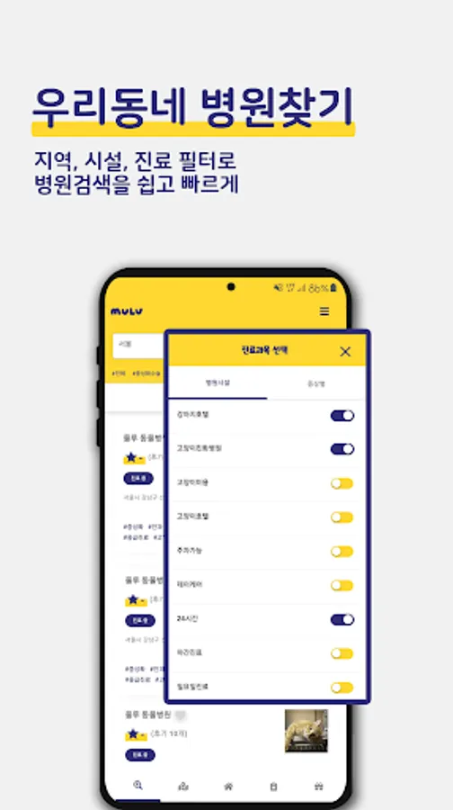 You can easily search for a veterinary hospital you want with facility filters such as cat-friendly hospitals, 24 hours, and night care.