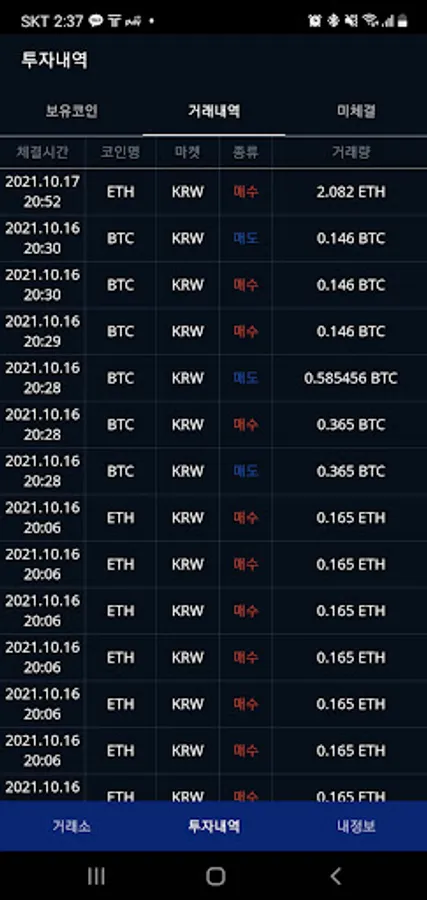 You can see the history of the cryptocurrency you have purchased, the transaction history, and the list of cryptocurrencies that have not yet been concluded.