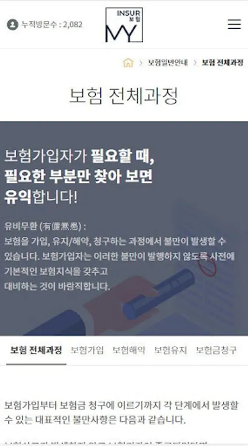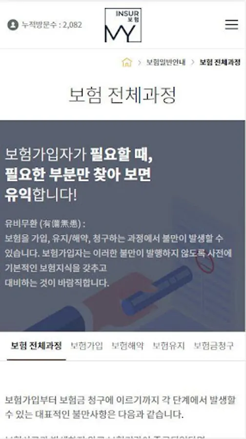 The MyInshu site solves the above problems by allowing the insured to keep the relevant information such as the insurance history and the insurance product list from the stage of the insurance product.