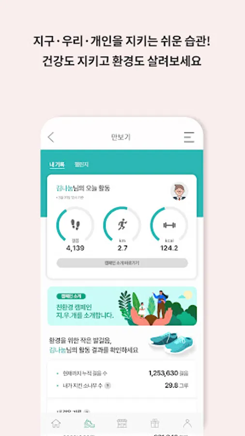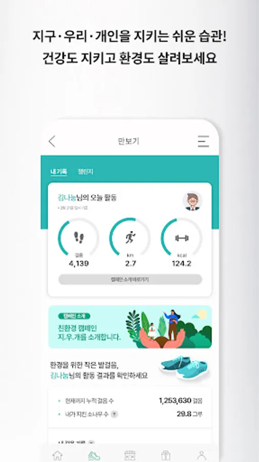 ESG campaign pedometer for Naanjeong! Check the number of steps through the pedometer and check your carbon reduction effect.