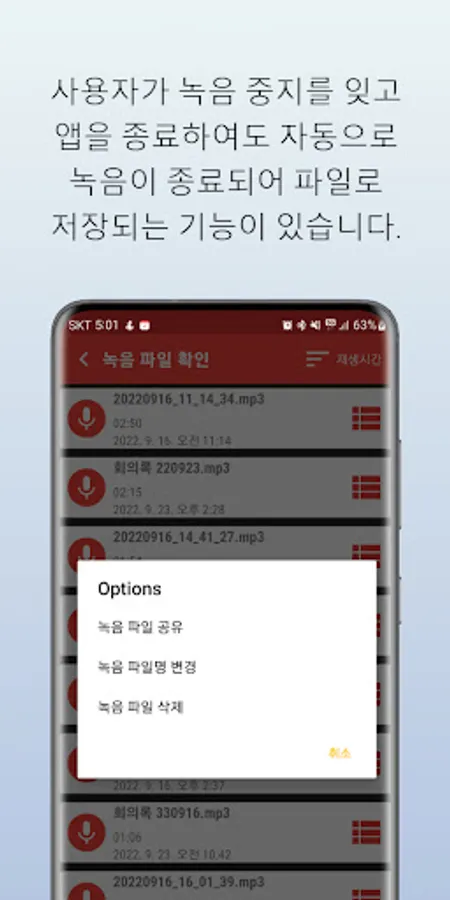 Even if the user forgets to stop recording and exits the app, there is a function that automatically ends the recording and saves it as a file.