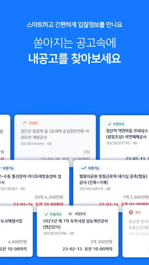 언제 어디서든지 간편하게 공고를 검색하고 공고 상태, 정보 등을 한눈에 파악할 수 있습니다