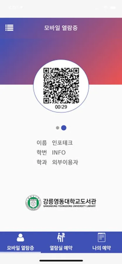 Gangneung Yeongdong University (Gangneung Yeongdong University) is a mobile seat reservation system.