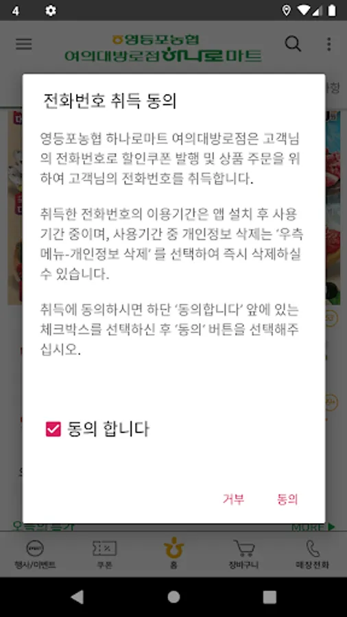 This service is an app that delivers real-time product information to customers and offers one of the points daebangro Yeoui Mart Yeongdeungpo cooperatives.