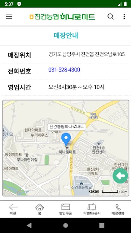 - 전화 : 진건농협 하나로마트 전화연결 사용