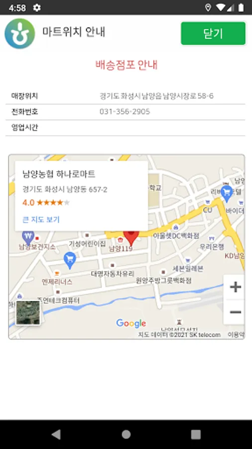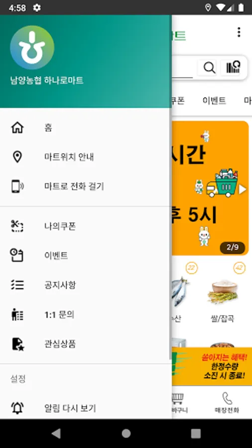 This service is the app that delivers a real-time customer information, product descriptions and discounts on Namyang NH Hanaro Mart.