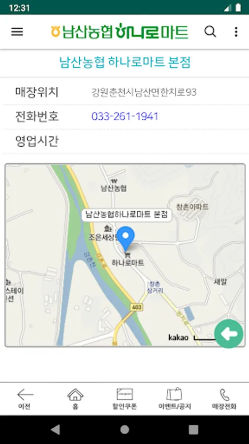 3. If you press'Phone' at the top, the phone will be connected to Namsan Nonghyup Hanaro Mart.
