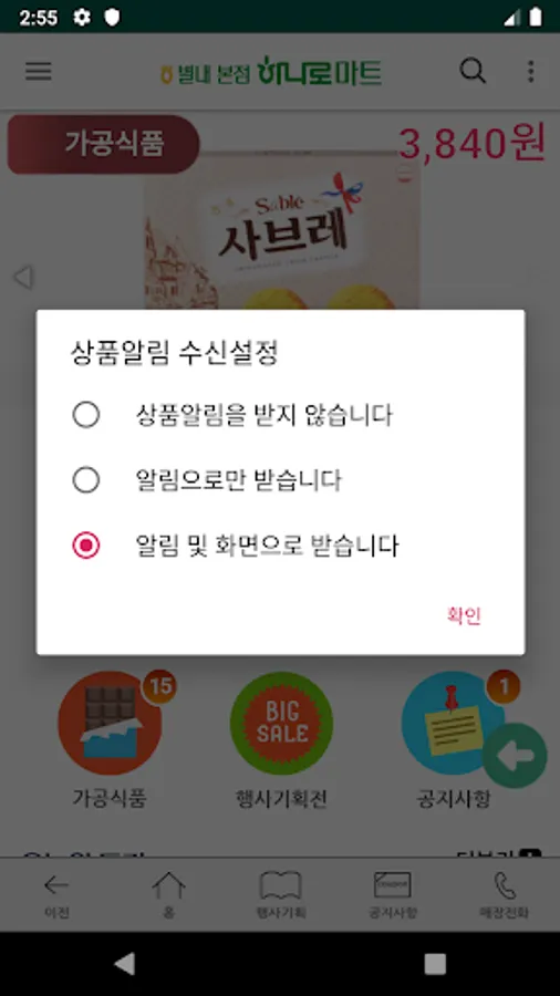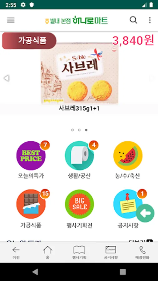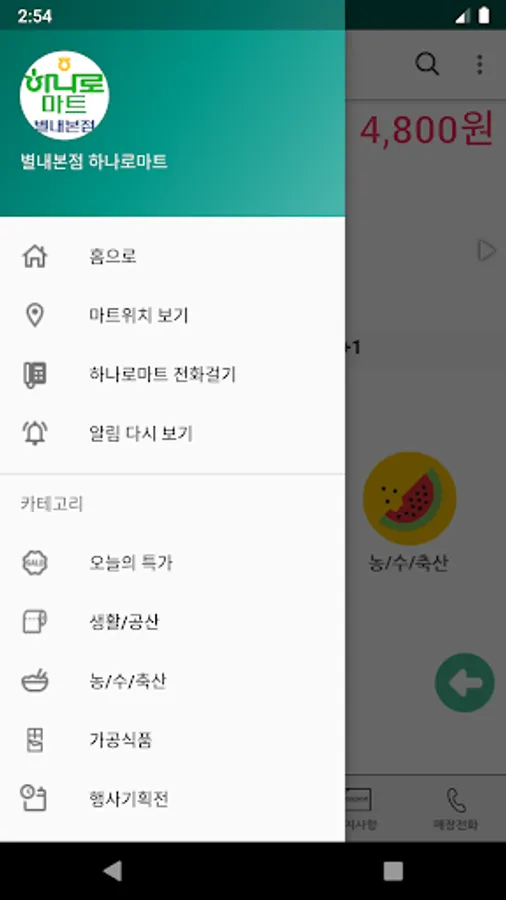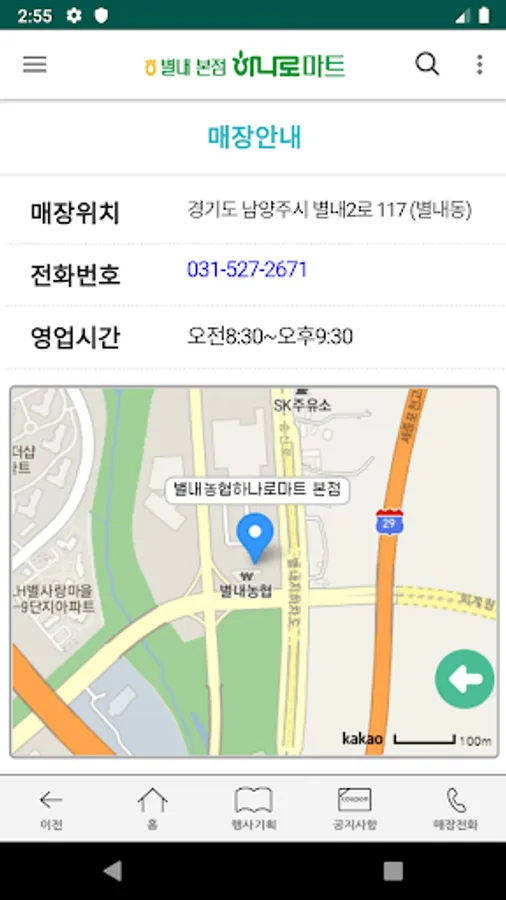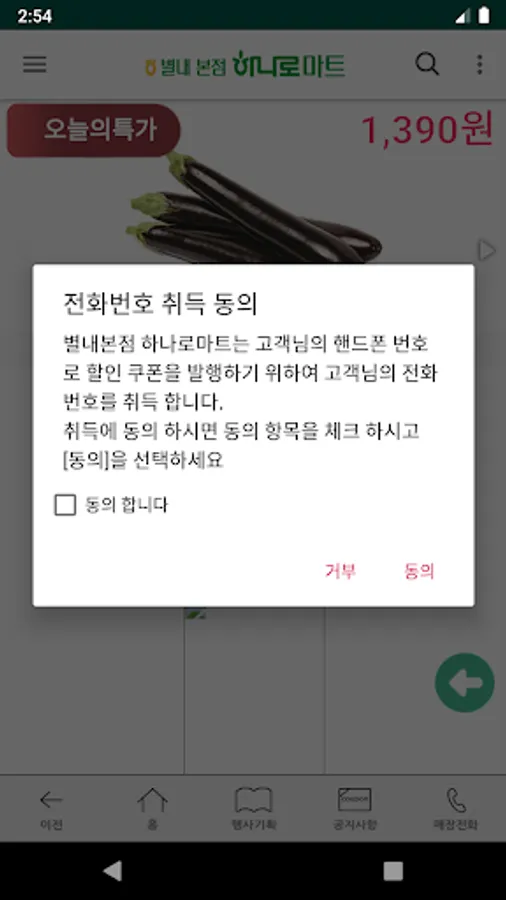 This service is an app that delivers a real-time customer information, product information and discounts on byeolnae NH Hanaro Mart headquarters.