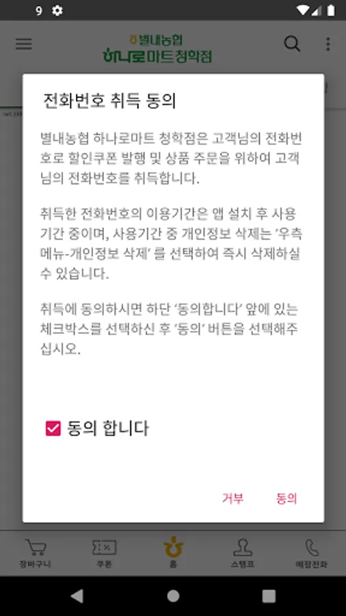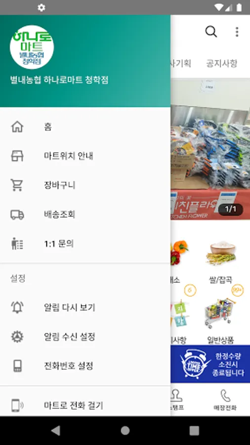 This service is an app that delivers a real-time customer information, product information and discounts on byeolnae Chunghak Hanaro Mart.