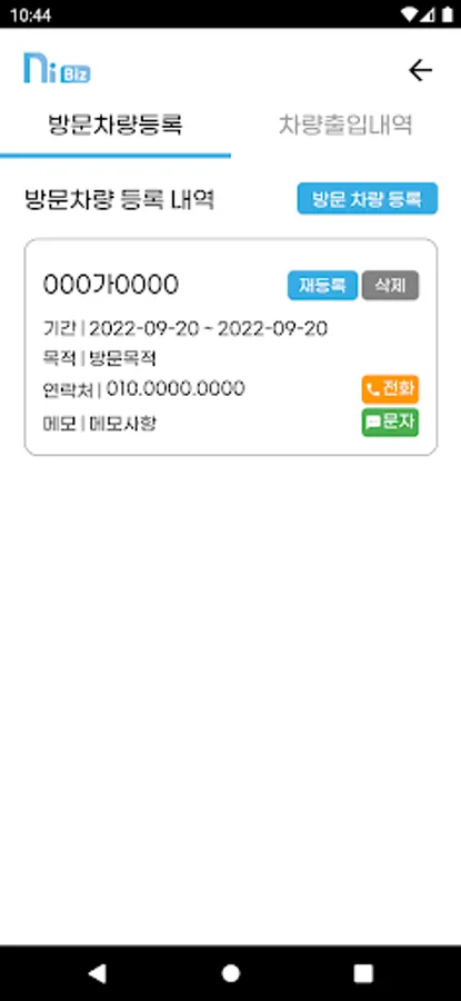 - Parking management: It is possible to check the entrance/exit of a visiting vehicle, registration of a visiting vehicle, inquiry of entry/exit, and a vehicle entrance notification service. (However, when using the Nice Park parking system)
