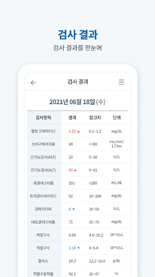 각종 검사 결과를 언제 어디서나 조회 하실 수 있습니다.