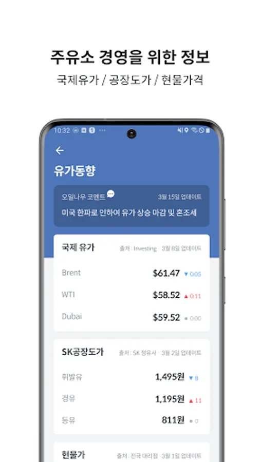 For Oil Now gas stations, it quickly checks the trend of oil prices in nearby commercial districts.
