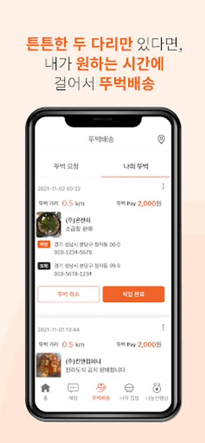 ▶ 뚜벅배송 : 직접 나눔이 부담스럽다면, 근거리 도보 배송 서비스인 뚜벅배송을 활용해보세요. 고객님 누구나 간단한 가입절차를 통해 뚜벅이로 배송에 참여가 가능합니다.