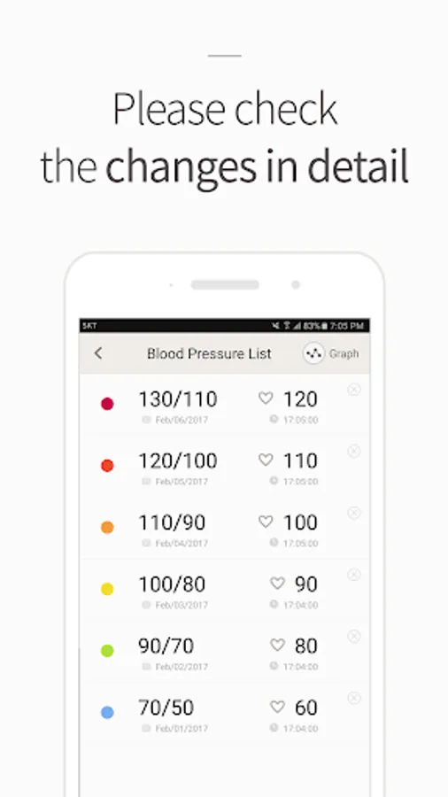 - Data Record : You are able to enter your BP, weight and blood glucose data and view those records in graphs and lists.