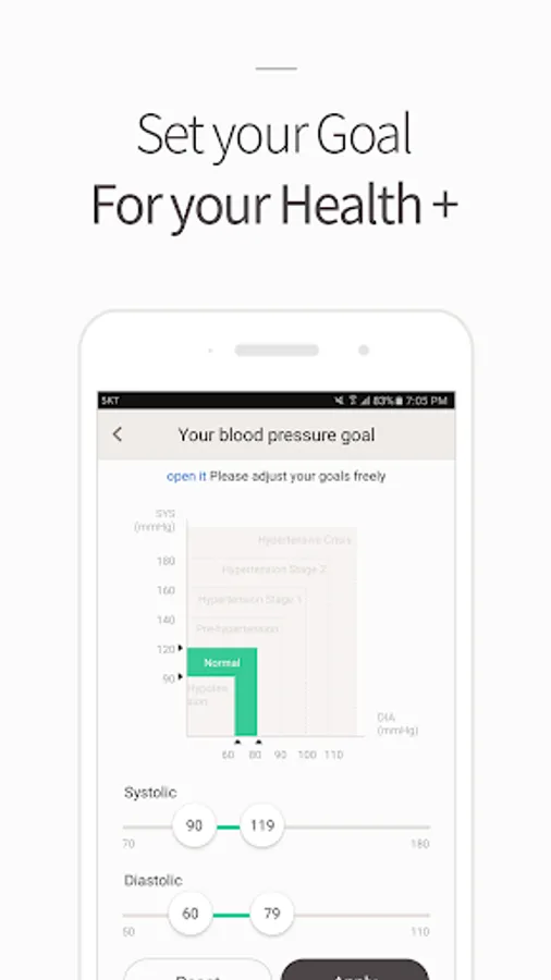 - Goal setting: You are able to set the target for your Blood Pressure and weight value.