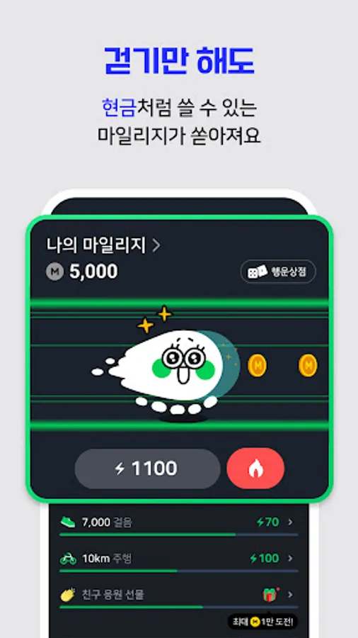 ● Collect energy and earn mileage