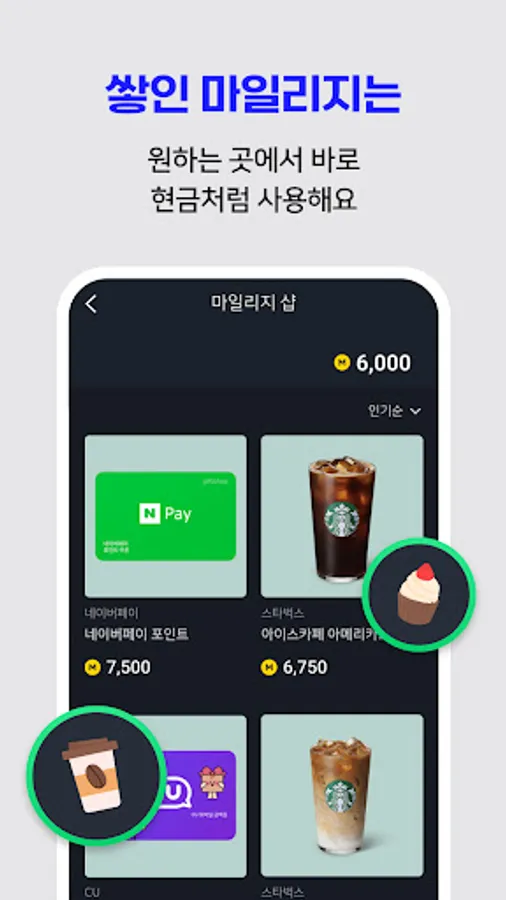 Mileage can be used like cash at the ‘Mileage Shop’ and ‘Lucky Shop’.