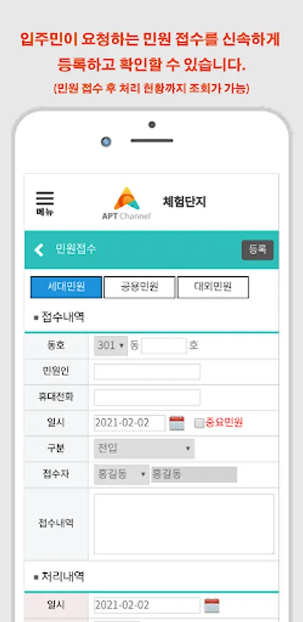 On the non-face-to-face basis, residents can receive feedback on mobile complaints (defects) received and processed through the app,
