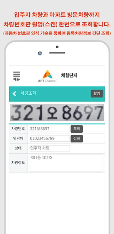 Residents can check the parking location, and when checking, the app automatically recognizes the license plate at the site and