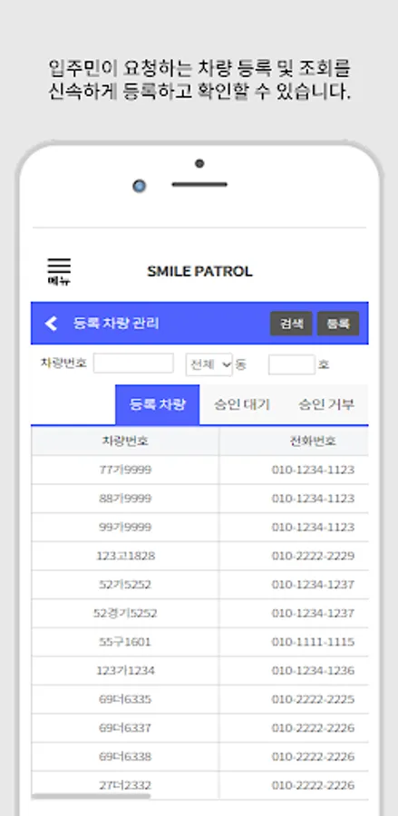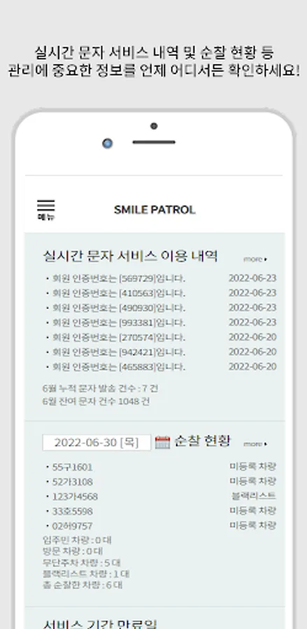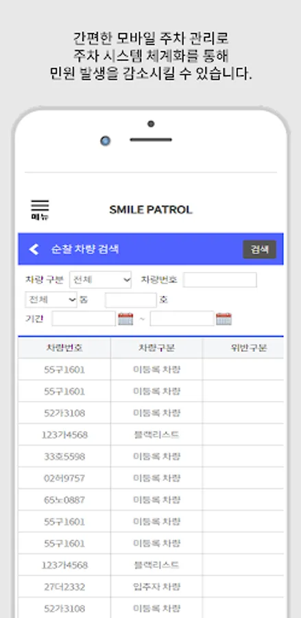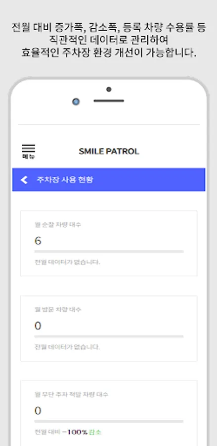 By recognizing the license plate of a parked vehicle to patrol vehicles and distinguish users of registered vehicles from users of unregistered vehicles, data through statistics can be viewed intuitively at a glance.