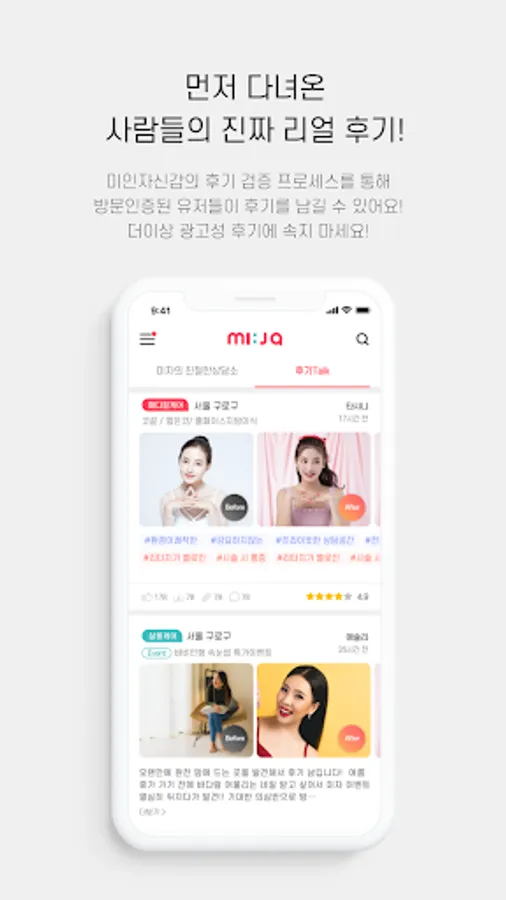 방문인증된 유저들만 남기는 진짜 리얼 후기를 미인자신감에서 만나보세요.