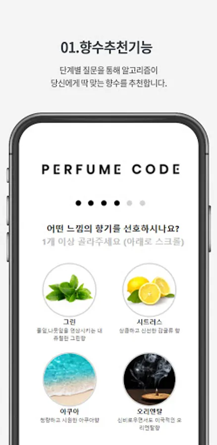 Perfume Code visualizes abstract scent images and recommends perfumes that suit your taste through algorithms.