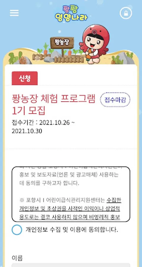 PhangPhang Yeongyang Country App is an educational space where children can develop a healthy eating habit together with their parents through various experiences and fun activities.