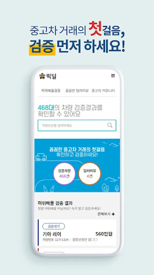픽딜의 중고차 검증은 단 1분이면 됩니다.