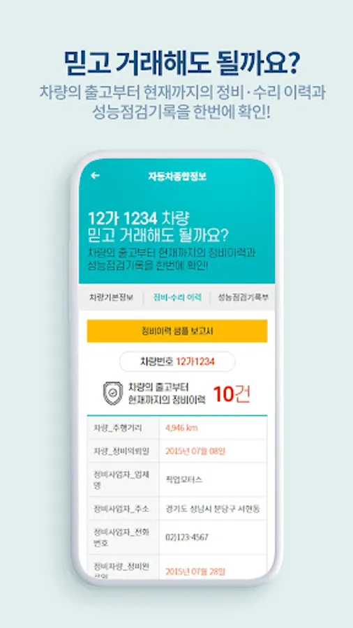 ✔ 차량 사고 팔때 누적 성능점검기록 정보