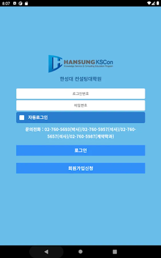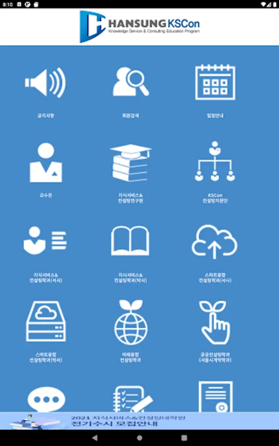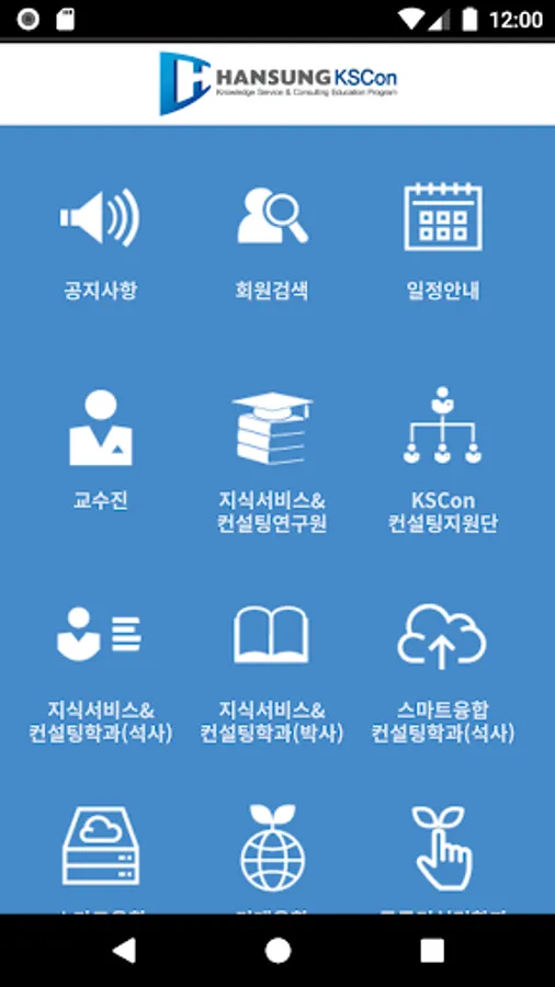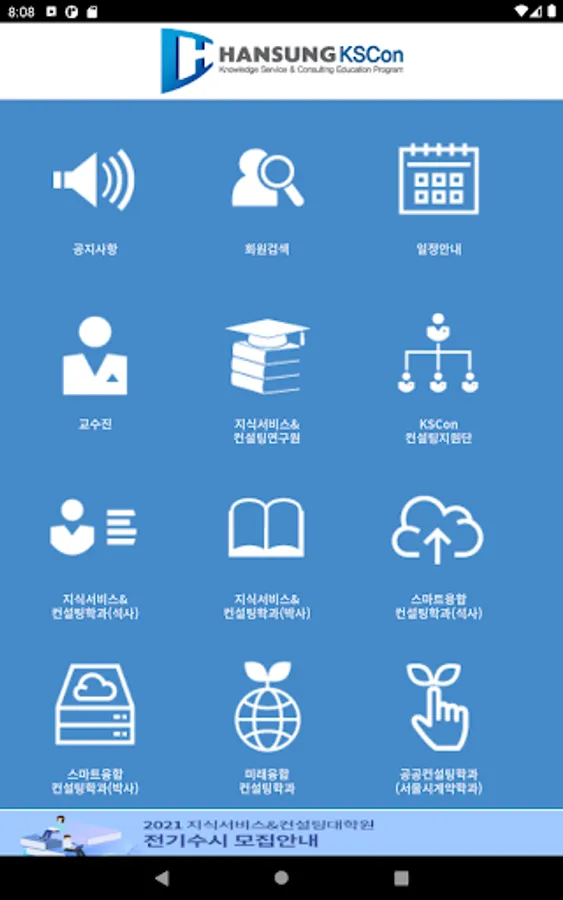 Hansung University KSCon app was developed to share information and smooth communication between alumni and consulting graduate school.
