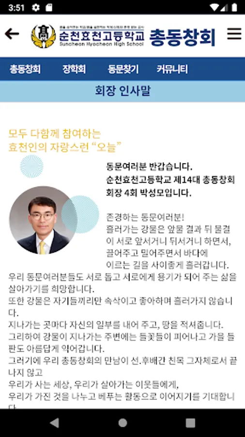 효천고총동창회 어플은 회원들간의 원할한 커뮤니케이션과 정보를 공유하고 장학회를 운영하기 위해 개발되었으며,
