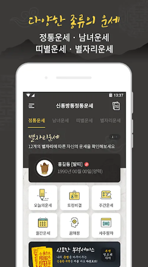 Shintongbangtong Orthodox Horoscope is the best free horoscope app that provides free grounded premium horoscopes so that you can cope with your anxiety, anxiety, and anxiety that may arise in the future through reliable solutions based on orthodox mechanics.
