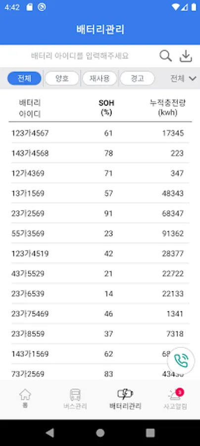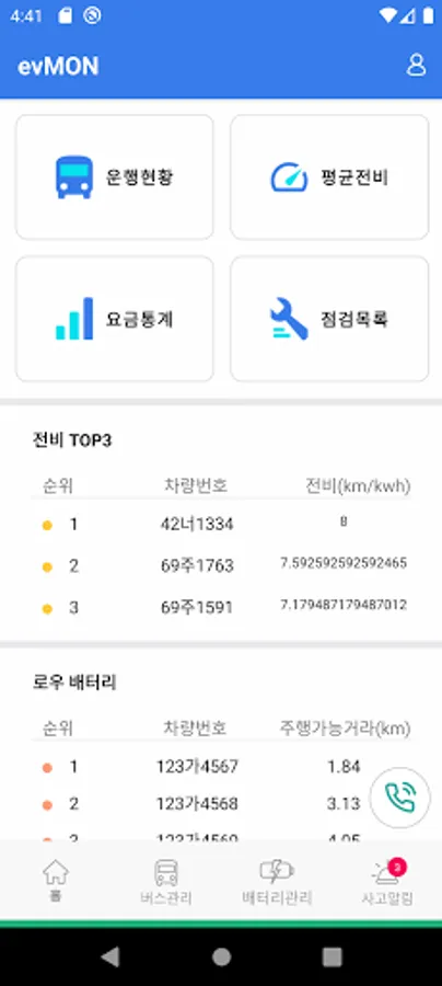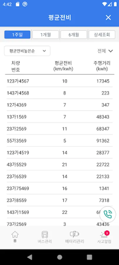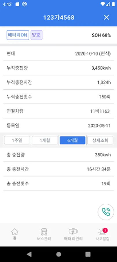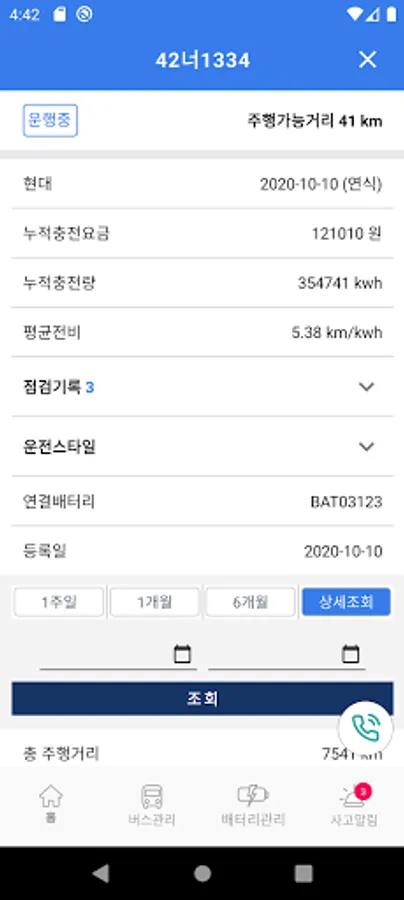 In addition, you can view the electric bus operation log (daily, weekly, monthly) and battery failure history.