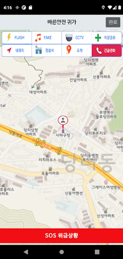 Third. This is an emergency situation occurs, shake or press the emergency button, the smartphone is available to dispatch the police service and on-site monitoring CCTV security utilizing notifies the urgency Go to the nearest location shown on CCTV map.