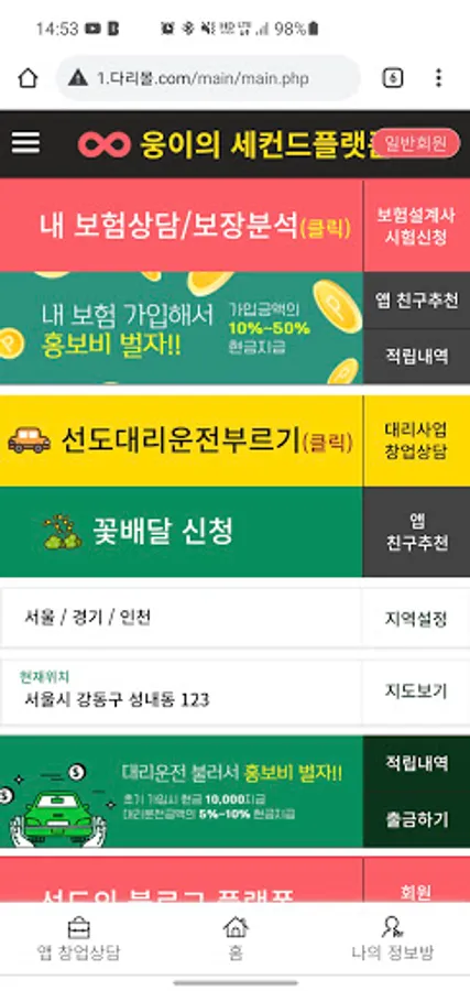 Earn money by using “Wongdae-ri” quick service, flower delivery, consignment, new car, used car, and long-term letter car