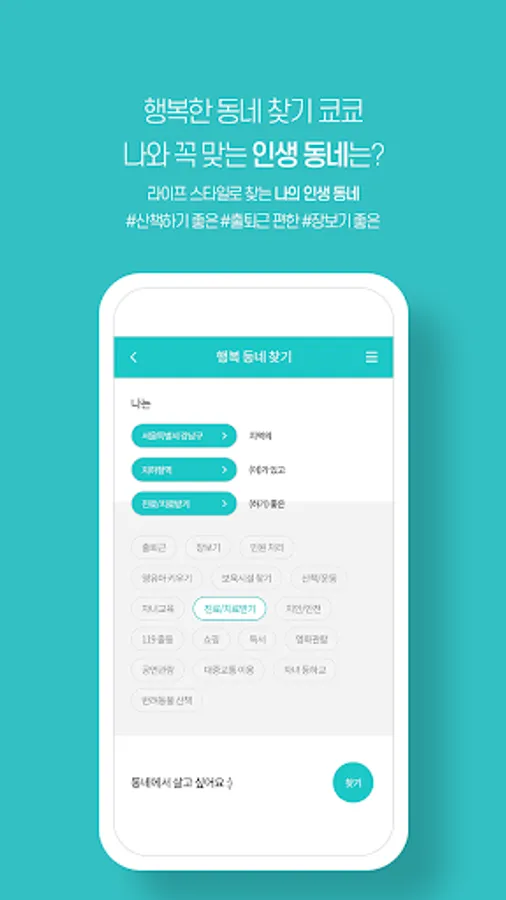 행복동네 찾기에 나의 라이프스타일을 입력해 보세요!