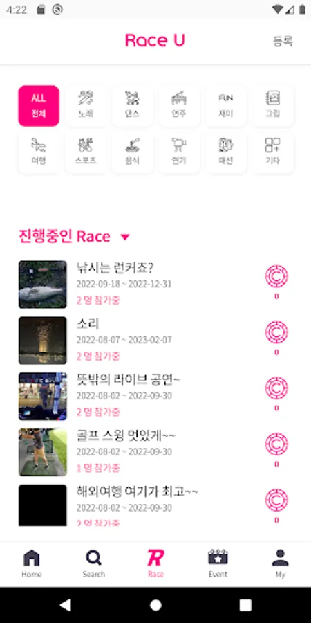 Race U can rank for various content (songs, dances, food, sports, acting, movies, fashion, etc.).