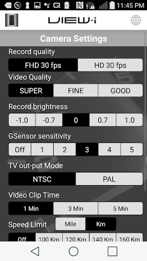 View-I Elite Plus device can store and playback driving scene while running your vehicle. VIEW-i app continuously communicate driving status with phone connected to WiFi.