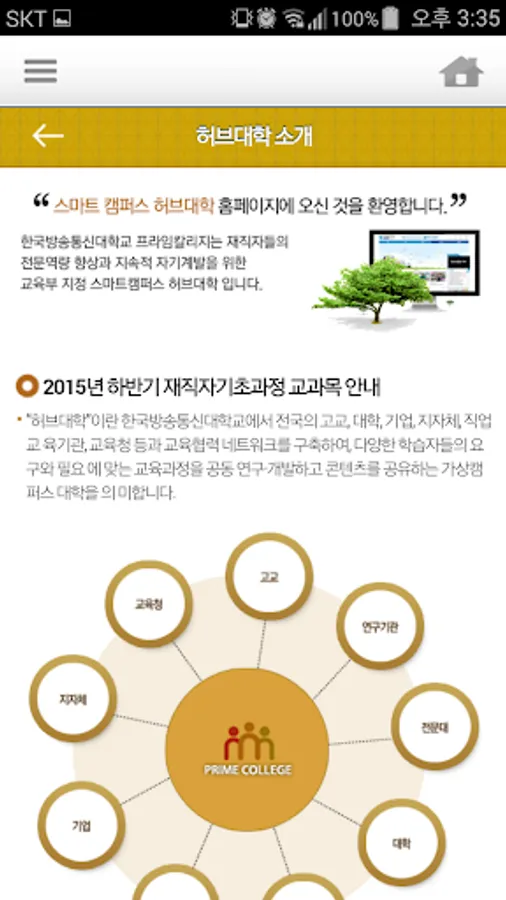 Korea National Open University Colleges prime hub app university course descriptions, public lectures and was created in order to support student learning